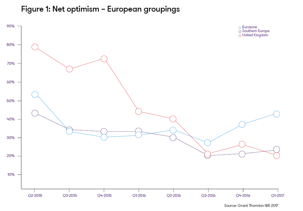The Eurozone has been expanding steadily. According to Grant Thornton’s quarterly International business report (IBR) it’s on course for its third consecutive year of above-trend growth.
