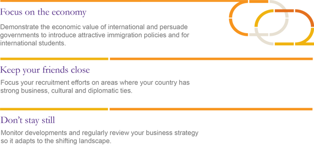 While government thinking shapes the policy agenda, HEIs must work collaboratively to make their voice heard and ensure that the policy environment allows them to thrive. Those that don't will struggle to remain competitive. By demonstrating the economic and political benefits of international student mobility, institutions can boost their competitiveness and gain market share.